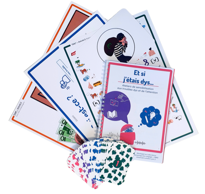 Pour sensibiliser un large public (enfant et adulte) à la réalité des troubles dys et de l’attention, une équipe de chercheuses a conçu une mallette d’activités destinées à se mettre « dans la peau » de personnes présentant des troubles, en leur faisant vivre des situations du quotidien. Cette expérience réelle des difficultés rencontrées permet de favoriser les échanges autour des ressentis et de déconstruire les idées reçues.
